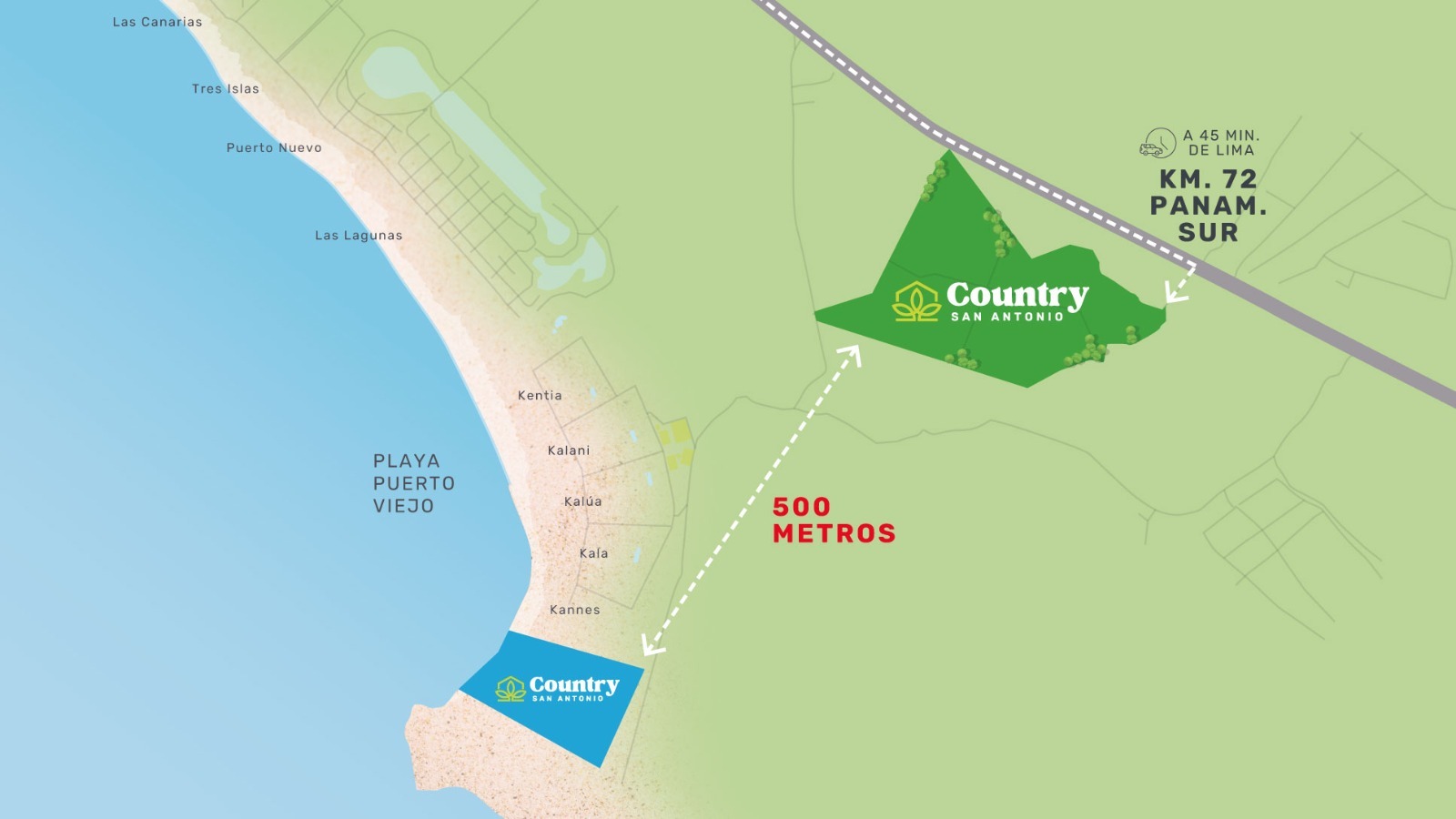 Ubicado en a 500m de la playa Puerto Viejo, dentro del distrito de San Antonio en Cañete (KM 72 de la Panamericana Sur), a una hora de Lima y a solo 20 minutos del Boulevard de Asia.